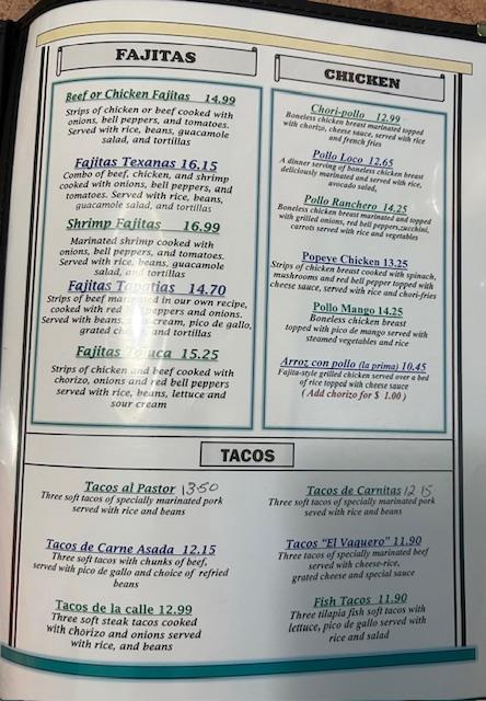 The menu at El Pueblito is expansive, offering over 100 dishes featuring traditional Mexican fare.
