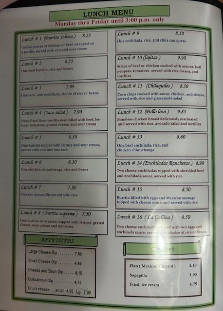 Begin your meal with appetizers like the large cheese dip or guacamole.